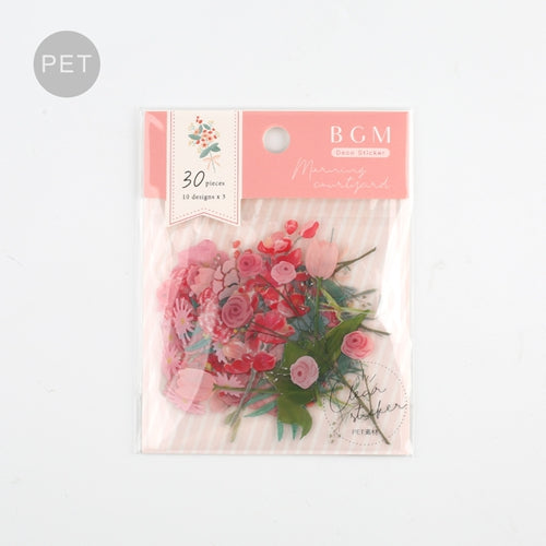 BGM, Morning Courtyard . Pink, Clear Stickers