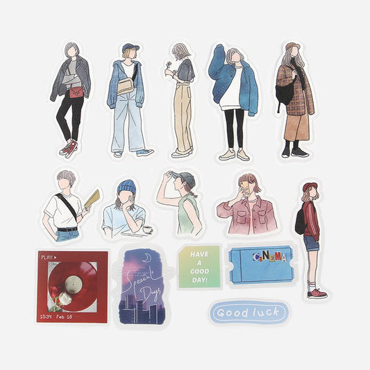 以人物圖像為主題的文具,例如有男孩和女孩插圖的印章和貼紙。最適合拼貼日記用。