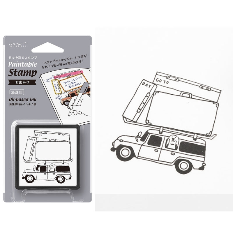 To create a colourful decoration to your journal, you can first stamp it, and then use a water-based marker pen to color up the stamped image without blurring it. Use the color pens from midori (sold here) which is designed specifically for colouring up these stamped images.