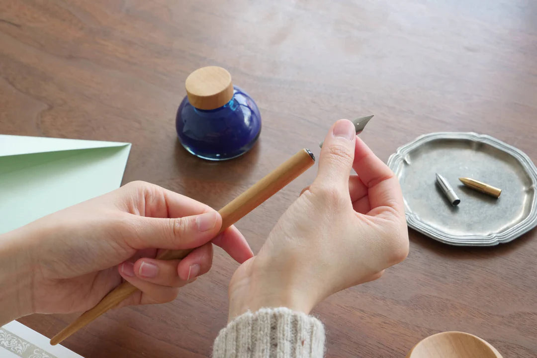 A nib holder crafted from Japanese cherry. Designed for ease of writing, the 7-inch length fits comfortably in the hand like a standard pencil. Partner with your favourite nib, or switch nibs to suit your mood. Fits most nibs as well as those from kakimori range (Nib compatibility: Check here).