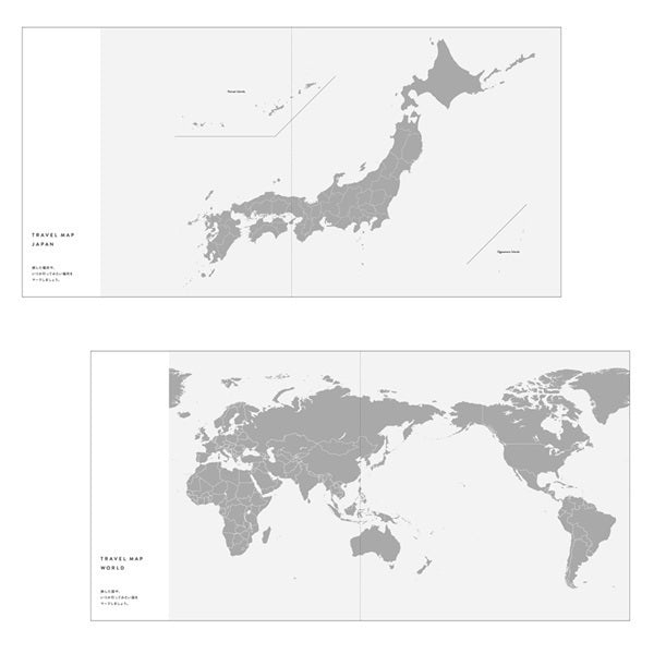 - Monthly/6 months' worth of spreads ・Daily/188 pages ・Half-year vision ・Monthly events ・Wish list ・Favorite log ・Travel map (Japan)・Travel Map (World)