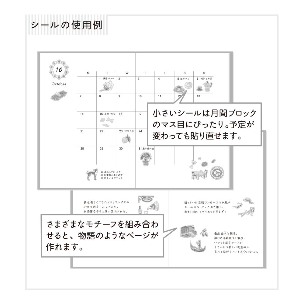 Takamaru’s signature soft color palette creates an elegant, sophisticated look—like taking a little journey every time you use these stickers.