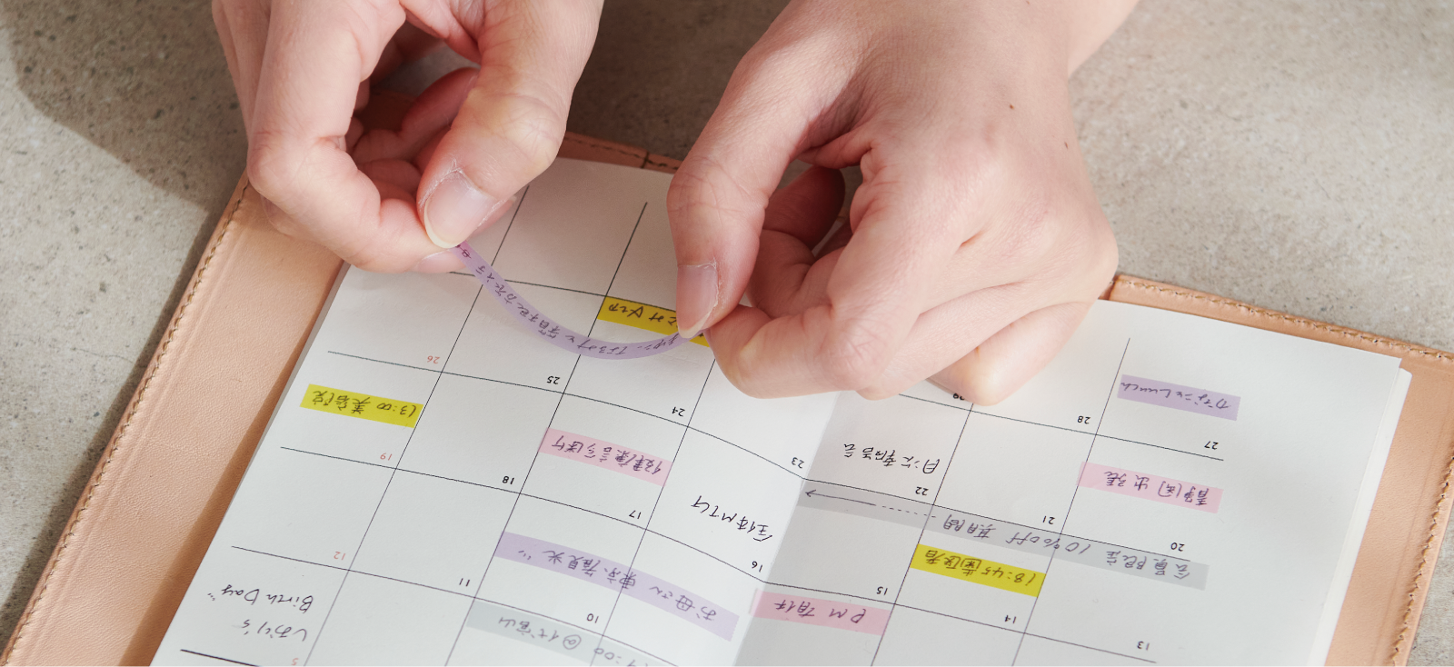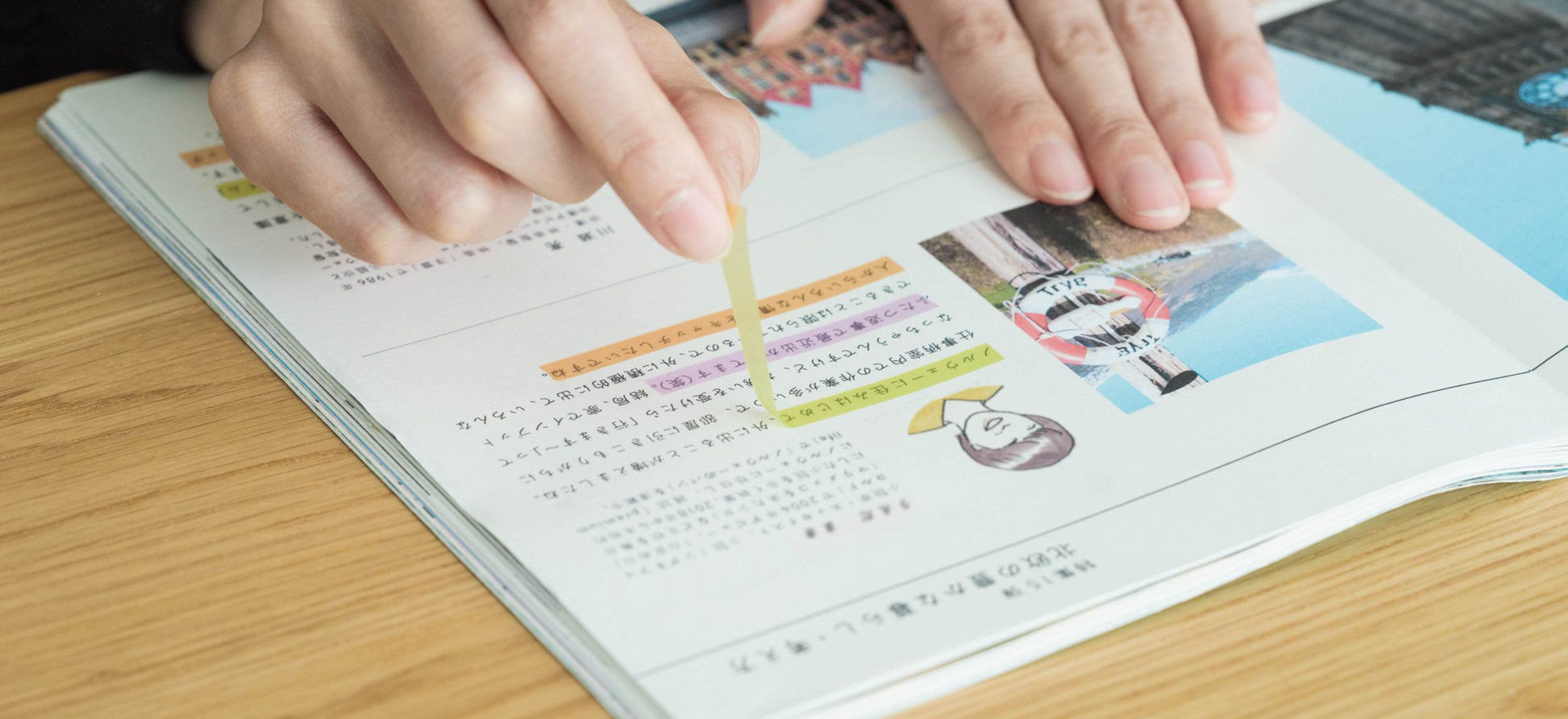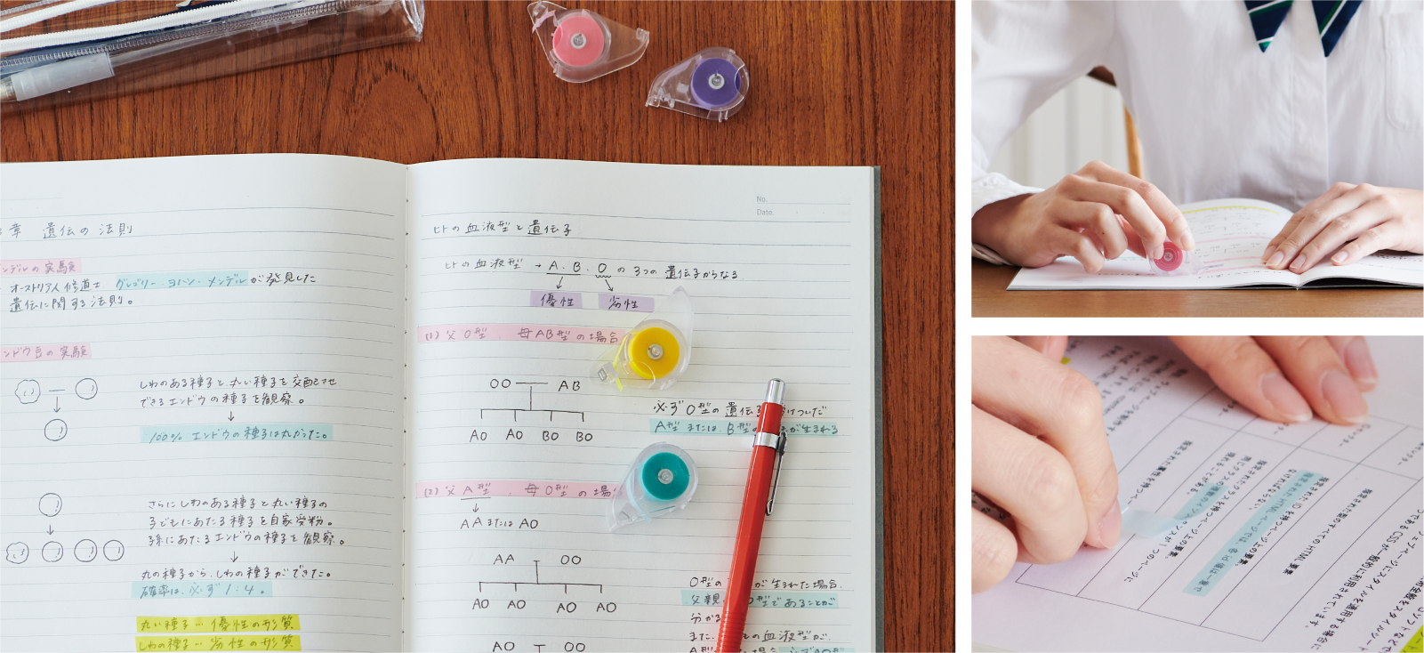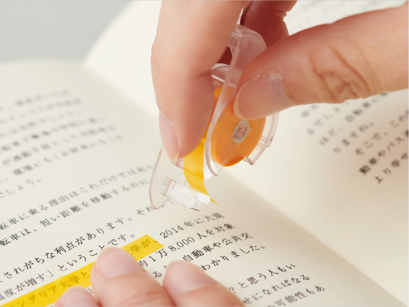 It is a marker that can be peeled off! The tape works like a highlight marker but is in fact a film tape. Better than ink type marker, it causes no trouble of bleeding through, or getting dirty because of the ink.