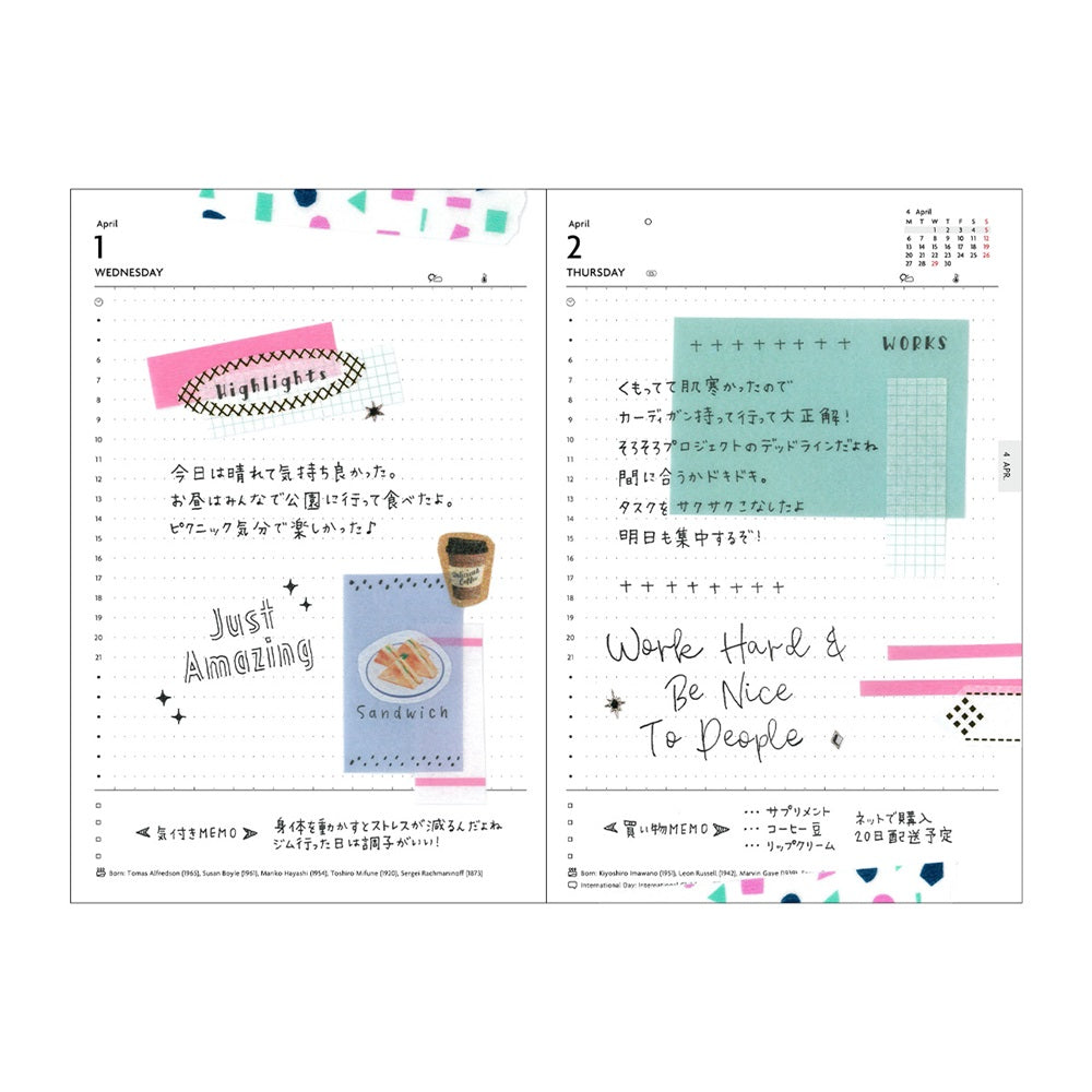 Not only can you use it for schedule and task management, but you can also use it as a diary, life log, idea notebook, etc. The way you use it is up to you. This planner is the perfect size for those who want more space on each page.