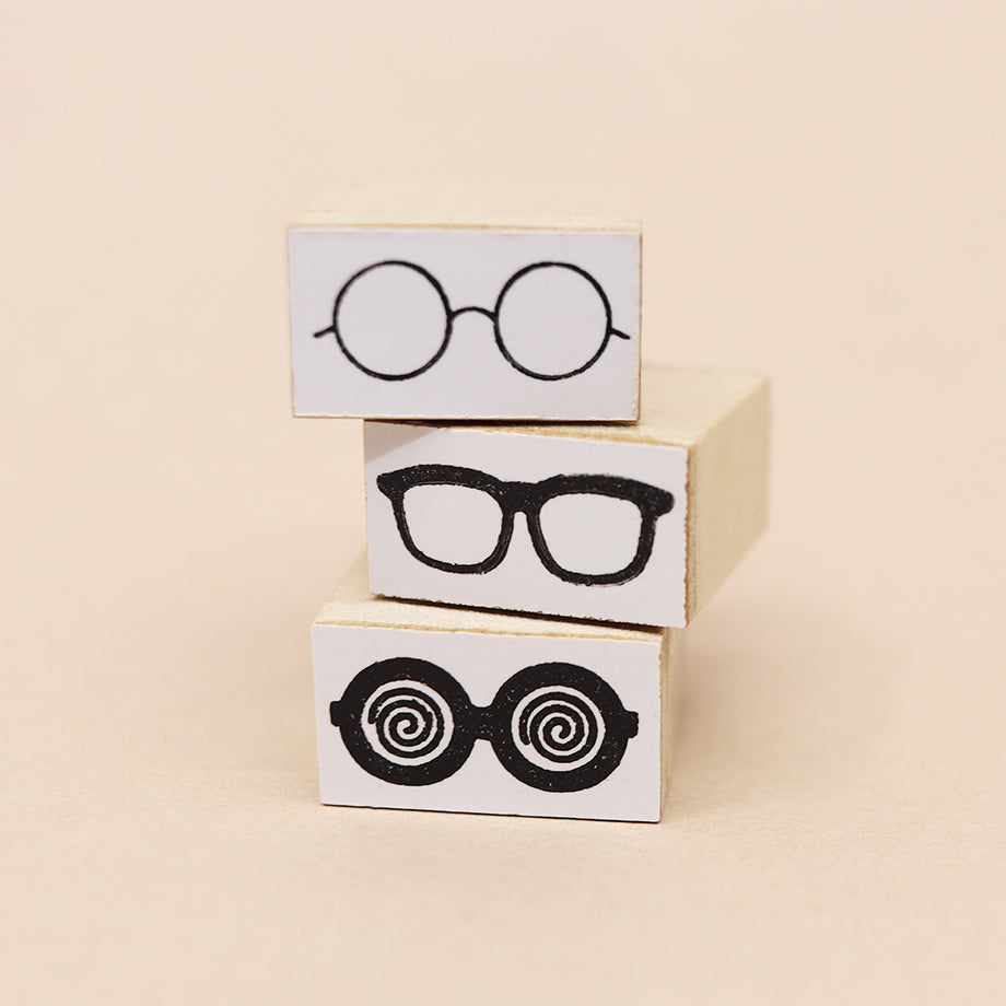 Stamp design of a pair of circular glasses, like John Lennon style.