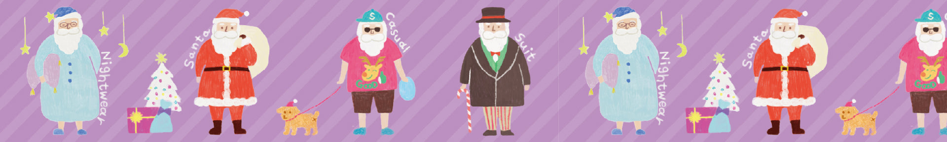 Ever wonder what Santa does when he's off duty? This decorative tape reimagines the jolly icon in fun, unexpected outfits for other occasions beyond the traditional red suit!