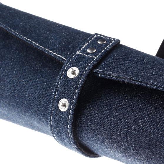 A roll-type pen case made of denim material. Suitable for casual use with work taste.