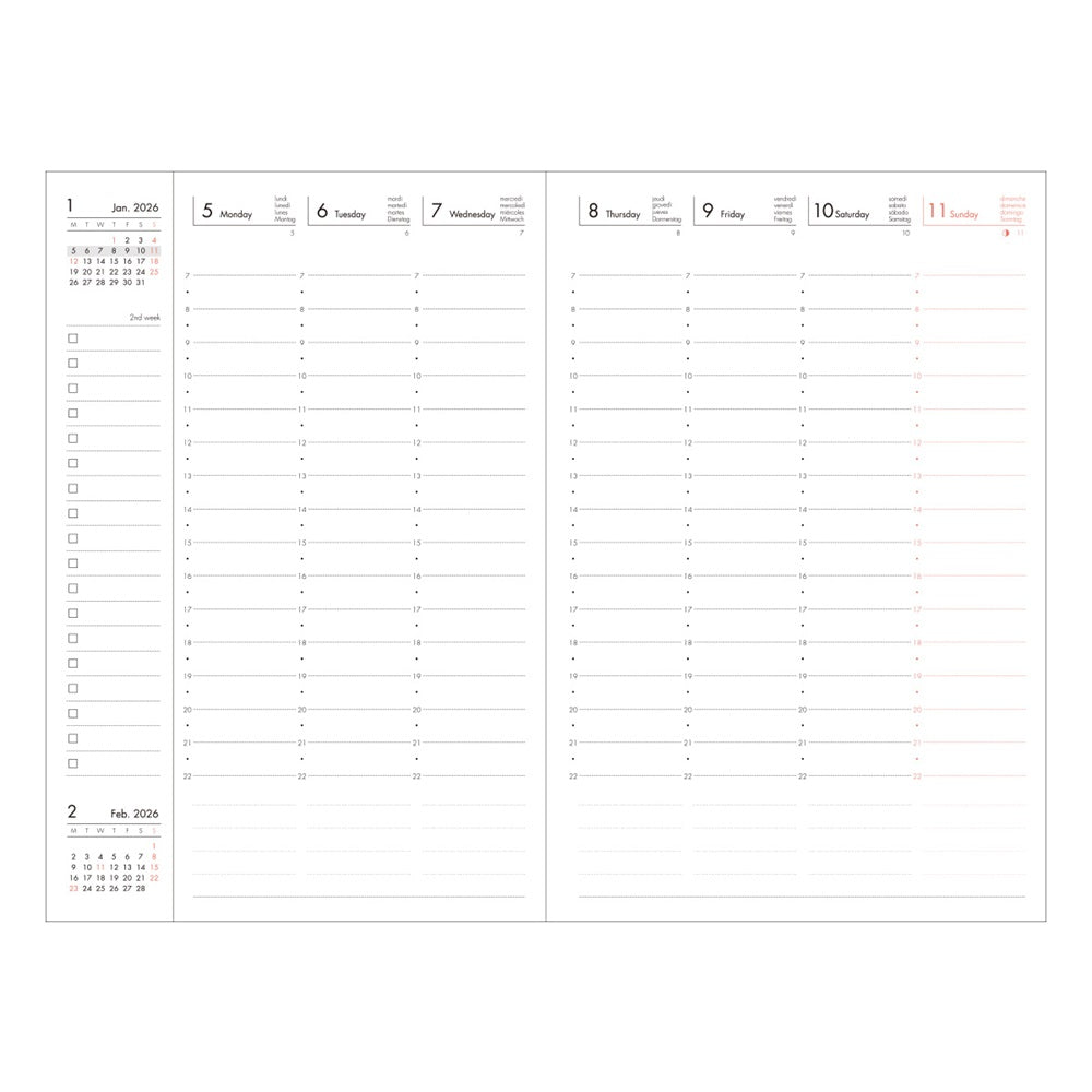 This is a weekly vertical type that can be used evenly with weekends, and you can manage multiple events for the day and tasks by work time. It is an item that is easy to use not only for private use but also in business situations.