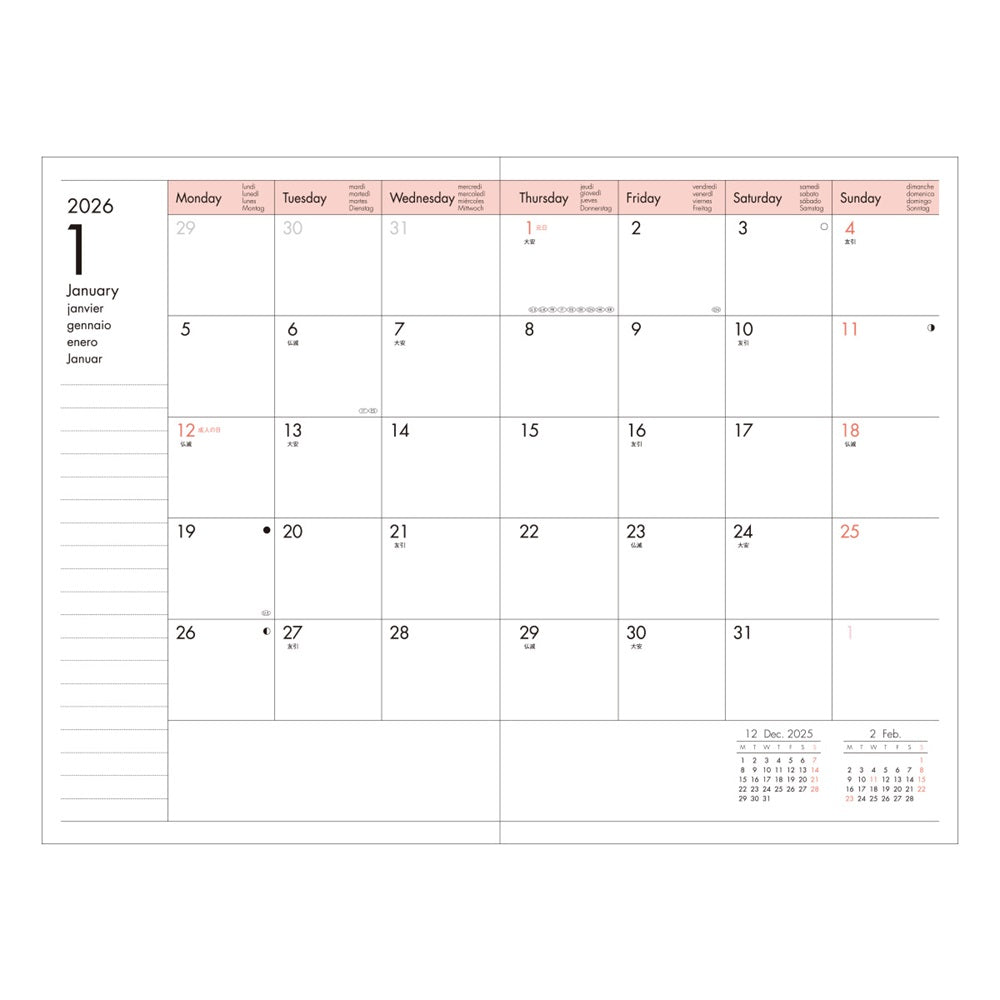 MARK'S 2026 手帳|世界地圖米白色|週直間|B6變型| 2025年10月始