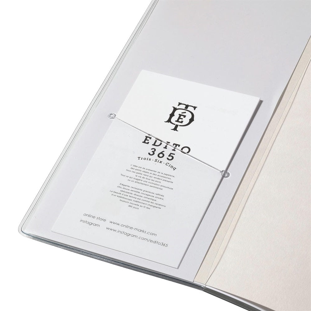 It has a clear PVC cover that is resistant to dirt, and on the inside there is a business card sized card slot and a pen holder. It fits neatly in your bag and is convenient to carry.