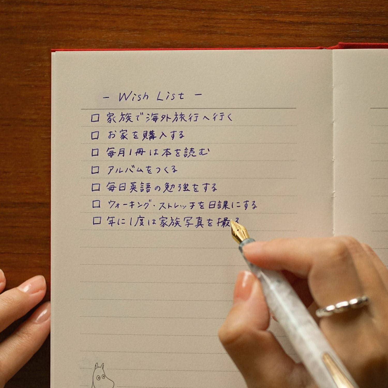 The paper is made of high-quality paper which is fountain pen friendly and ink would not bleed through easily. Moomin characters printed inside makes it more fun to write.