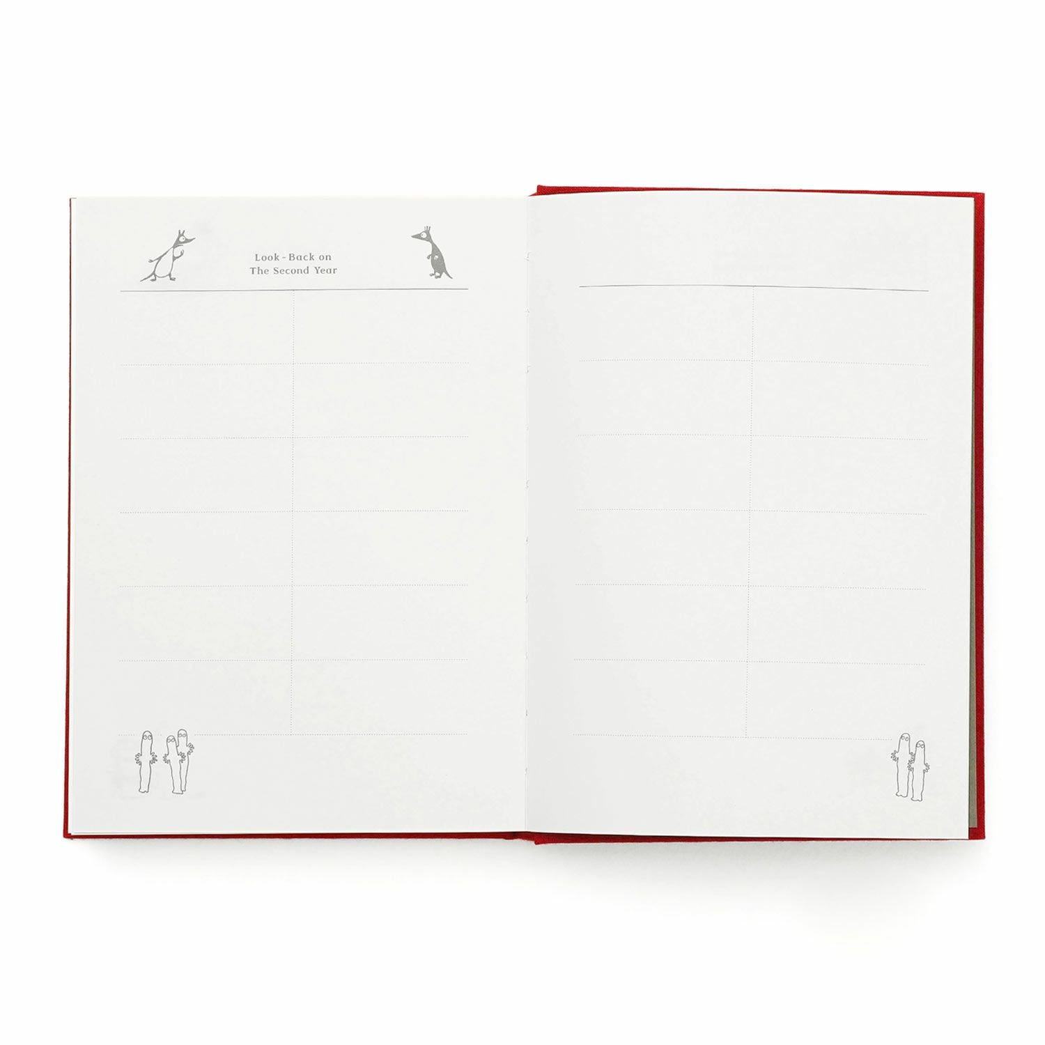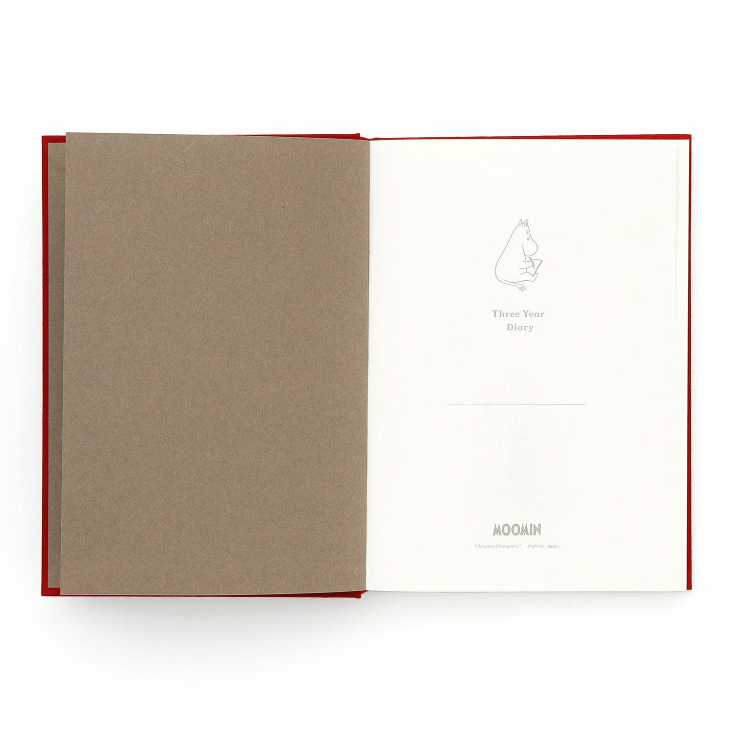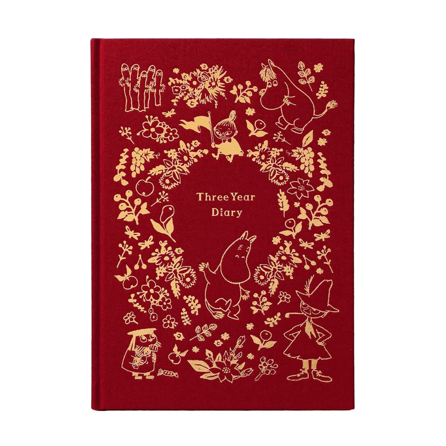 This is Moomin's 3-year diary is date-free, so it can be started at any time of the year. It has a classic design with gold foil stamping on the fabric cover, and it looks beautiful even just lying on the desk.