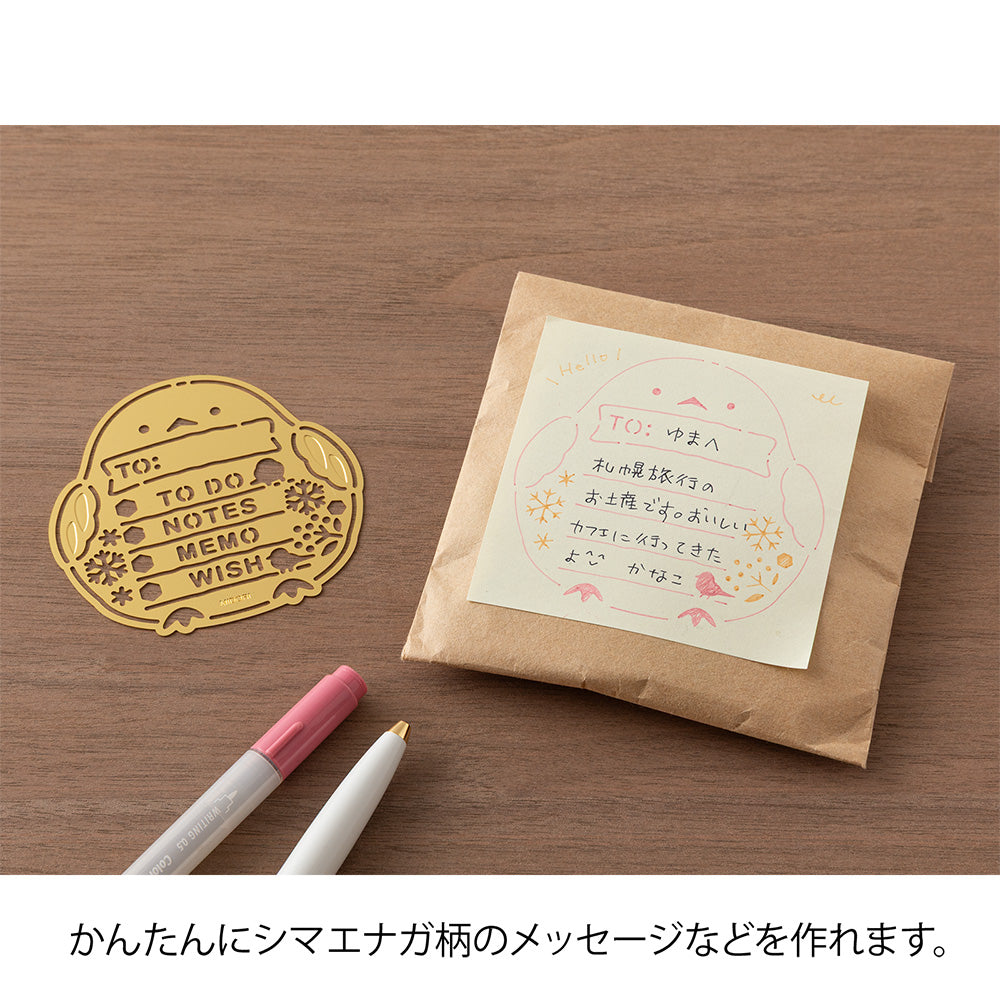 This brass template lets you easily add charming illustrations to your planner or notebook by simply tracing with your favorite pen. In addition to adorable animals and practical motifs, it also includes headings and to-do list formats—all designed to work together as a complete illustration. Inspired by the Shimaenaga, or Long-tailed Tit, found in northern regions, this design also includes snowflakes and berries for a cozy, heartwarming feel.