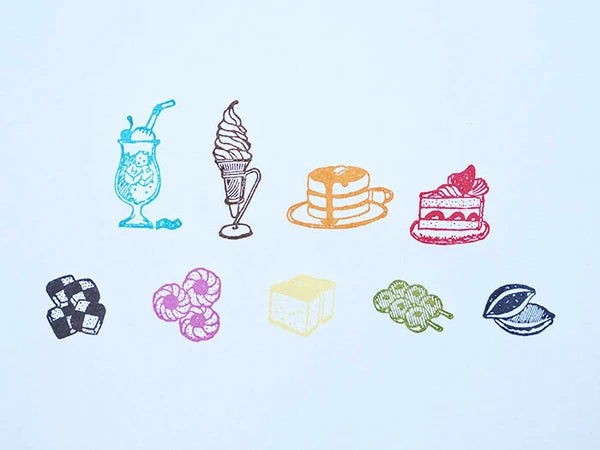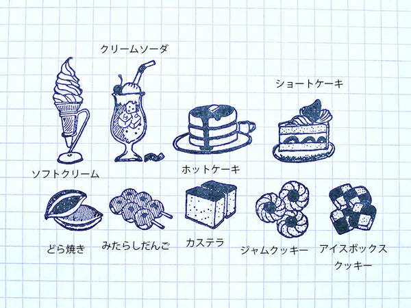 The concept of this series of "Shop Stamp" came from the imagination of Sublo being a pastry shop, a cafe, or a Japanese confectionery shop. The retro illustration is made into a stamp.