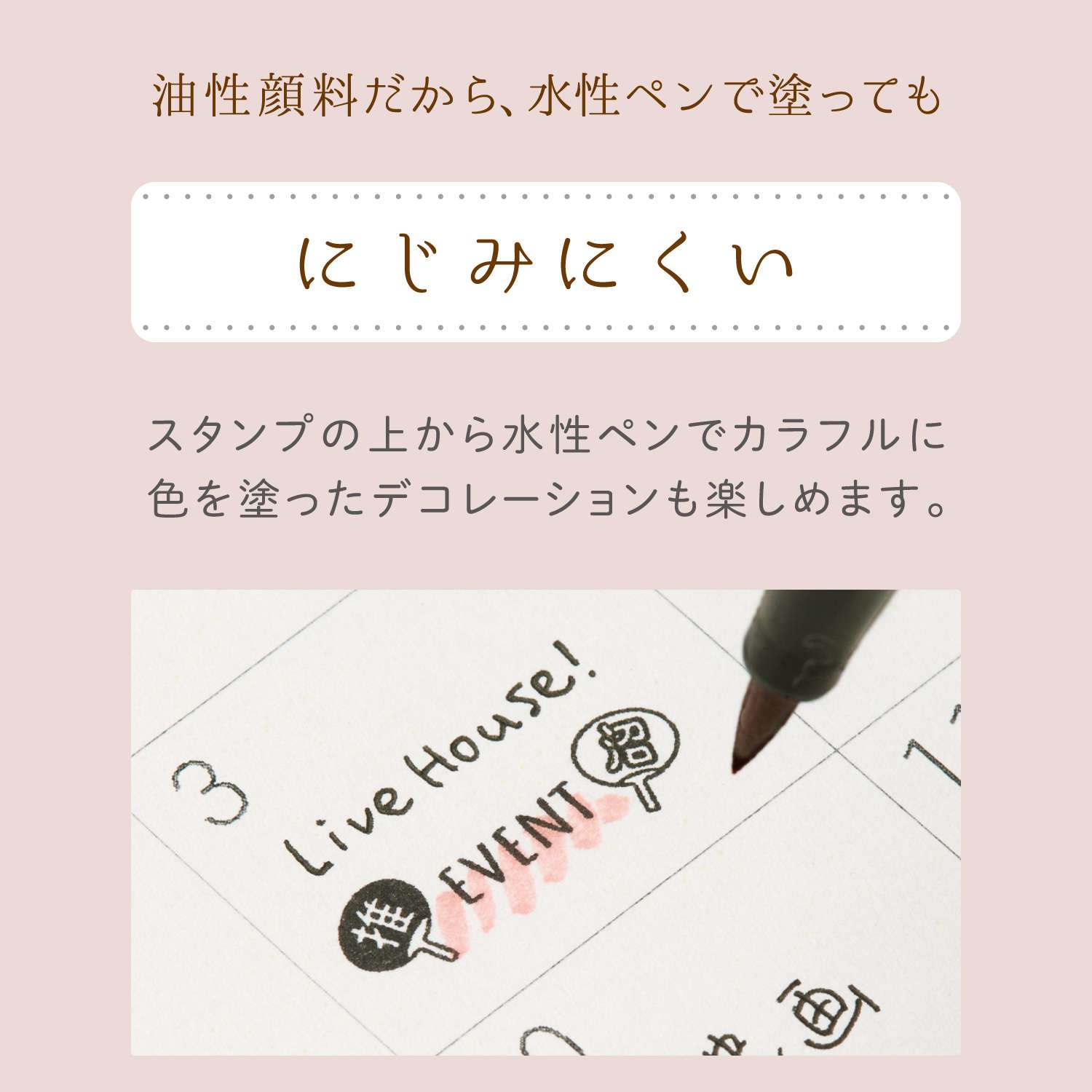 *Depending on the paper quality (processed paper such as art paper, coated paper, tracing paper, etc., and Japanese paper, etc.), drying may be slower and shadow may appear. Please check before using it.